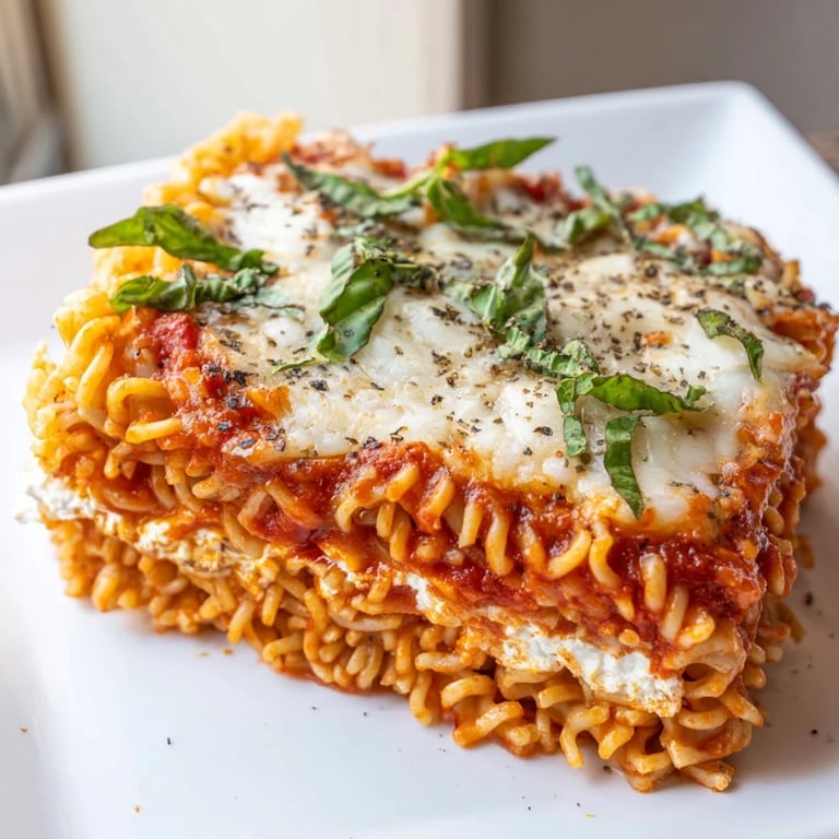 Traditional lasagna demands time and planning; this one sneaks up on you and delivers. The ramen noodles crisp up at the edges where they touch the pan while staying tender inside, creating this texture contrast that no regular pasta sheet can replicate. They also absorb the sauce more aggressively, so every bite feels saucier and more flavorful than you'd expect.