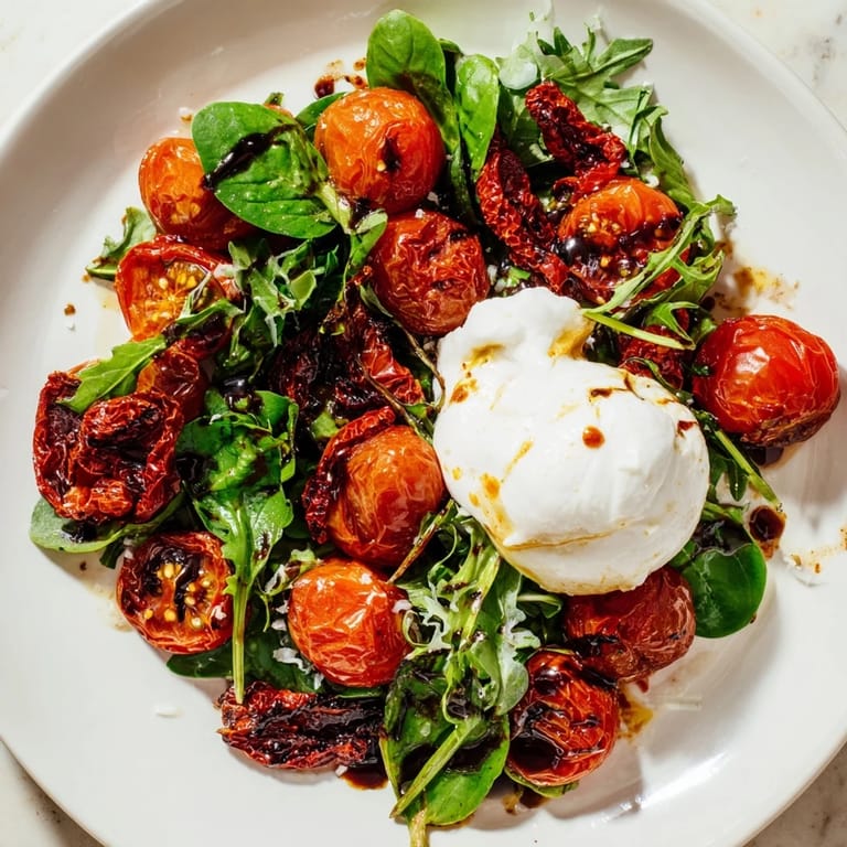 Sometimes I swap in fresh mozzarella pearls or crumbled goat cheese when burrata feels too indulgent. Both work but they change the vibe a little mozzarella makes it lighter goat cheese adds tang. If you want protein grilled shrimp or pan seared chicken would be beautiful here too.