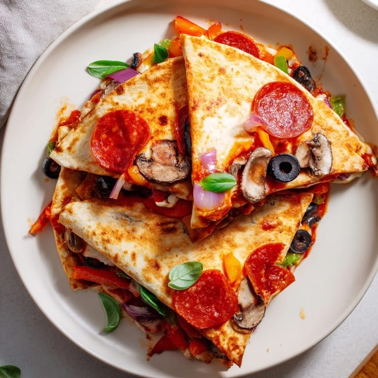 Pin it One lazy Sunday afternoon, I was standing in my kitchen staring at a half-empty container of pizza sauce and two flour tortillas, trying to decide between making a pizza I didn't have dough for or a quesadilla that felt too plain. That's when it hit me: why not fold them together? Within ten minutes, I had golden, crispy triangles of pure handheld pizza magic coming out of my skillet. Now this is the go-to meal when I want something that tastes indulgent but doesn't demand hours of my time.